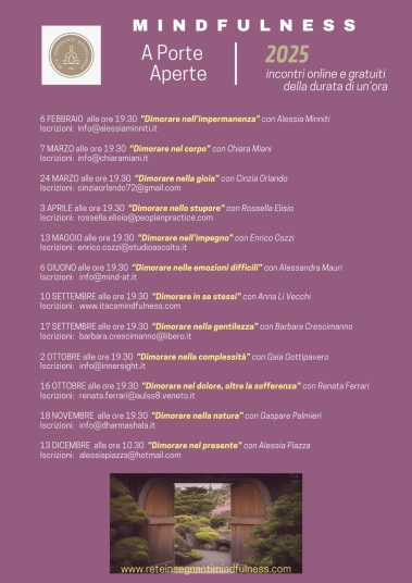 Gli incontri sono gratuiti e aperti a tutti, anche a chi non ha alcuna pratica di mindfulness.